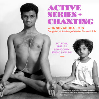 One of the last offerings from Sharath Jois, the Active Series is derived from traditional Ashtanga Yoga. Intended as a more accessible practice, but still requiring strength, the Active Series is ideal for a wider range of students. The traditional practice method of linking movement with breath is retained but new more accessible poses and variations have been added. **Shraddha Jois is an honored guest of The Shala and is in no way compensated for this event.